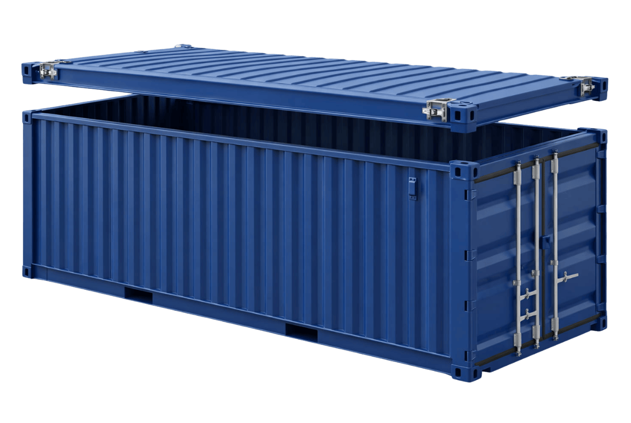 Höher als der Standardcontainer und ideal für sperrige Güter oder zusätzliche Ladehöhe. Perfekt für Maschinen, Palettenware oder Leichtgut.