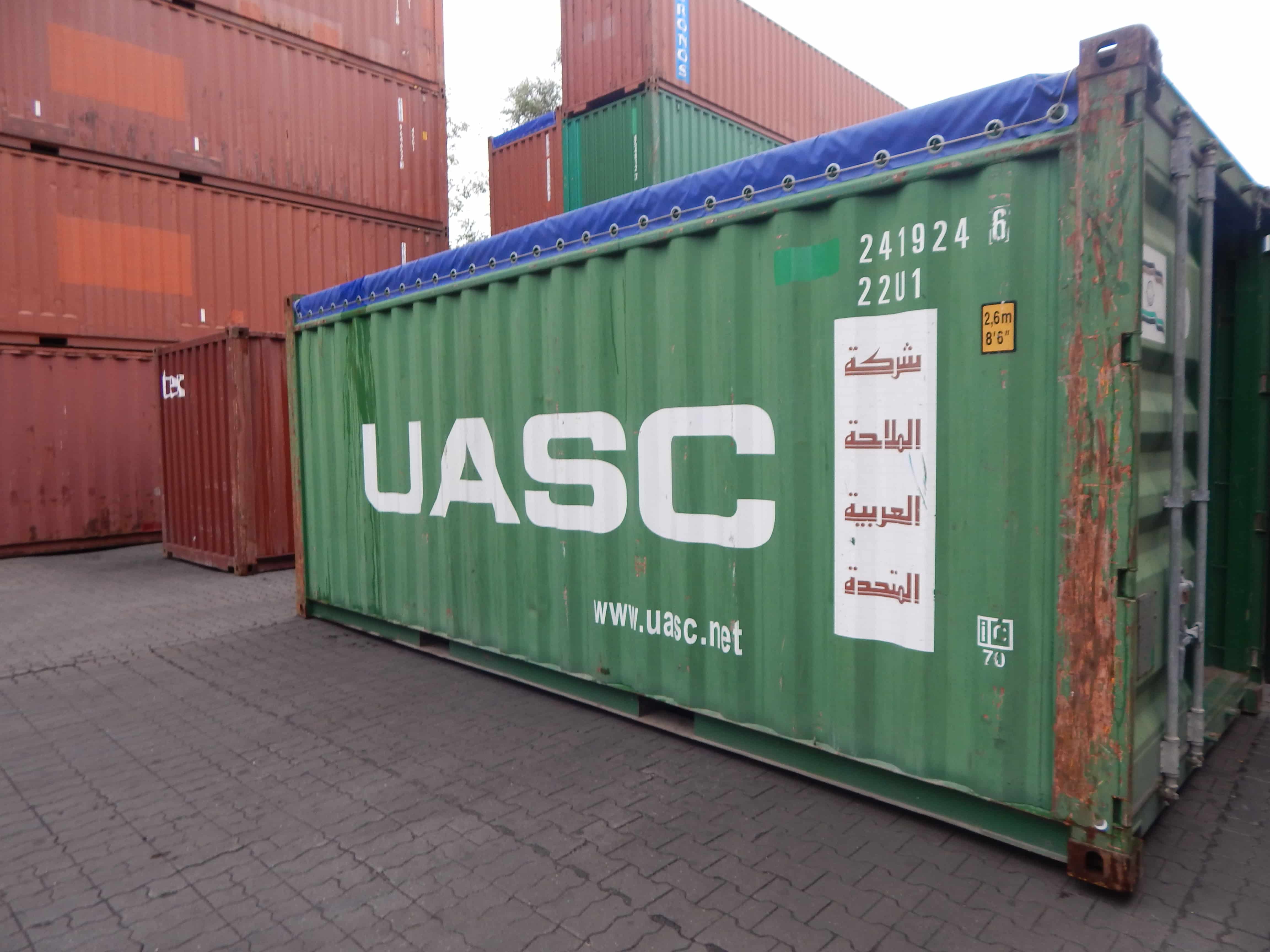 20ft Open-Top-Container, geeignet für Stückgut, Maschinen und überhohe oder sperrige Ladung. Die offene Dachkonstruktion mit abnehmbarer Plane ermöglicht einfaches Be- und Entladen von oben. Ideal für Industrie, Bau und Projektladungen.